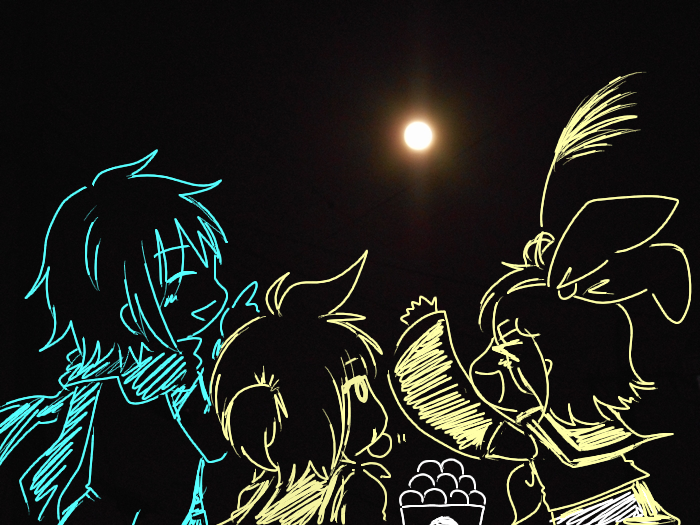 私は家の塀に座り月を見ながらお月見団子を食べました。